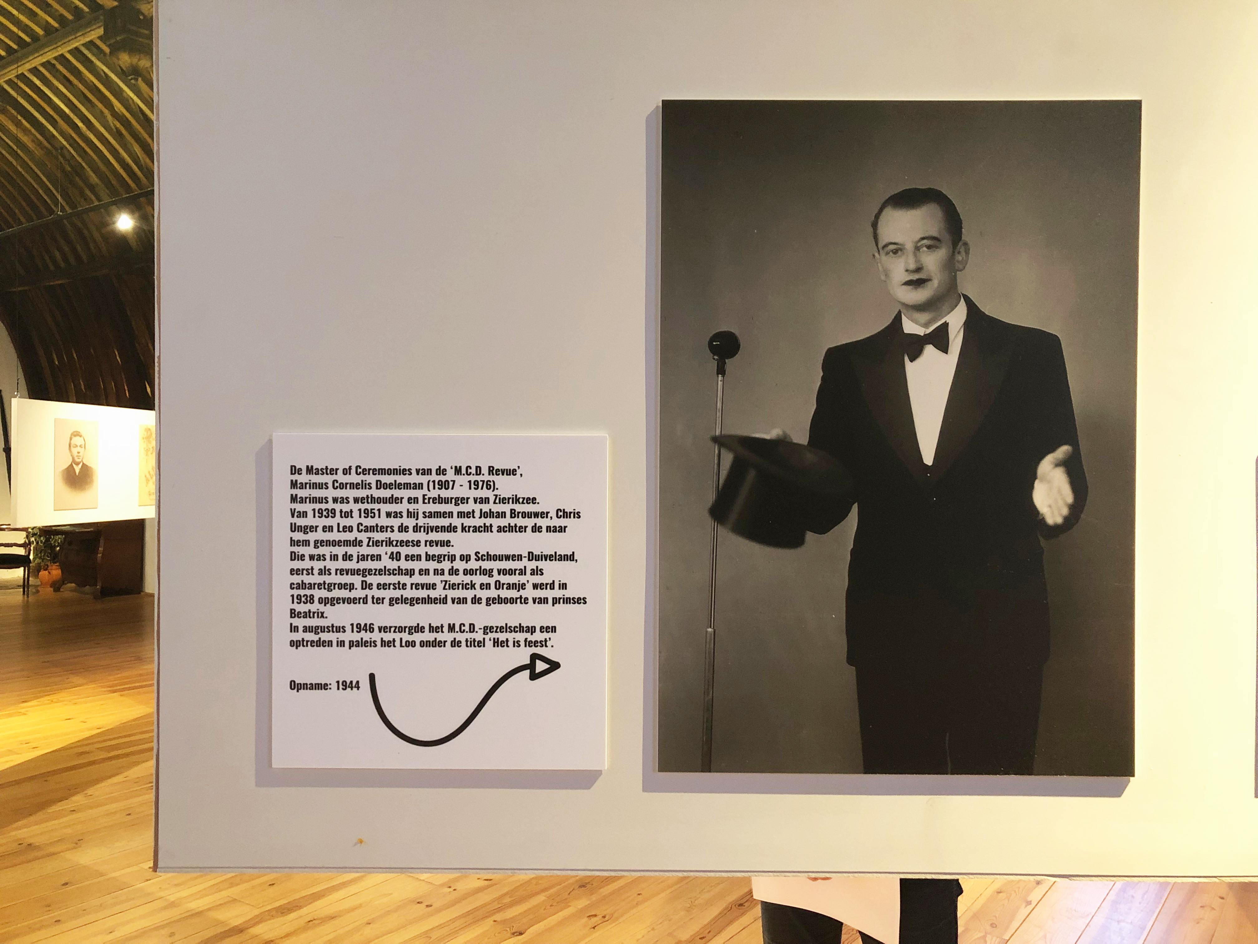 Je staat oog in oog met onder anderen Anthonette Maria Blom, de laatste vrouw in Dreischor die dagelijks de lokale klederdracht doeg. In 1981 stief ze. Je leest in een fotobijschrift over Marinus Cornelis Doeleman, wethouder van Zierikzee, maar vooral bekend om zijn cabaret en revue. Hij trad zelfs op in paleis Het Loo.