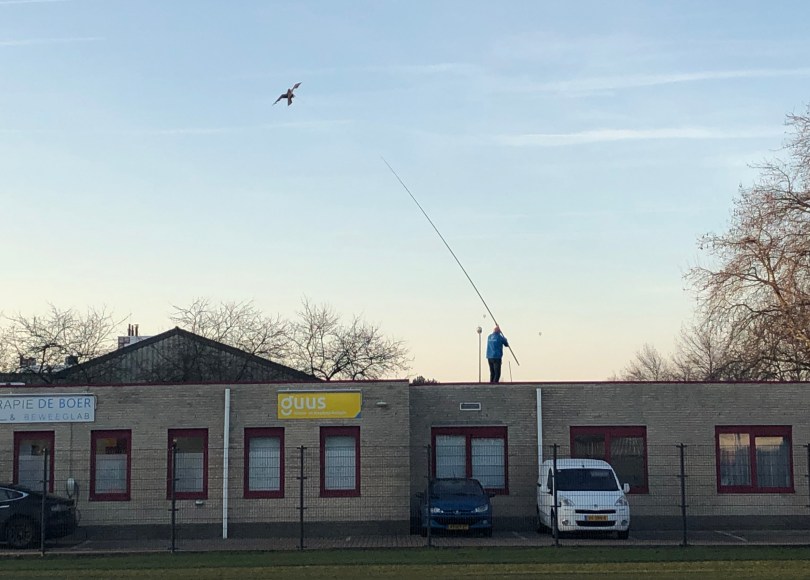 Flip, flap, flap… de vogel doet een soort van lenteballet op de maten van de wind. Hoog, laag, links, rechts… woesj! En als de hengel niet goed staat zet de vogelverschrikker ‘m weer recht. Of juist schuin, als dat beter is.