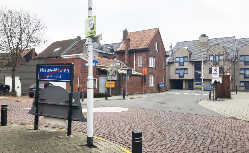 De grens: een lijn op een landkaart die je in het echt niet ziet. Of toch wel? Je kunt een muur of hek bouwen, zoals vroeger in Berlijn, wat recenter in Israël en nóg recenter in de Verenigde Staten van Amerika. Doordat de bouwstijl van huizen en het ontwerp van verkeersborden verandert, zie je dat je de grens over gaat. En je hoort het, zoals op de foto: in Kieldrecht rij je op asfalt en in Nieuw-Namen op klinkers. Van vmmm-geluid naar krrr. Klinkers klinken nou eenmaal anders.