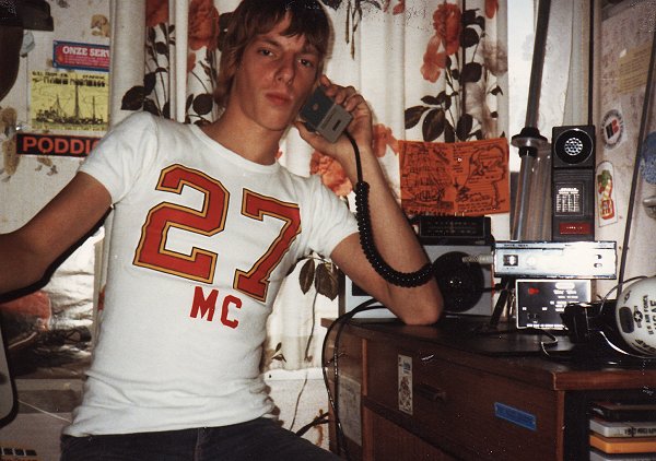 Jan van de Wege in zijn tienerkamer. Eerst als 27MC-liefhebber. Later ontstaat in dezelfde kamer Radio Enterprise (opgevolgd door Radio Noordzee). Foto: collectie Jan van de Wege.