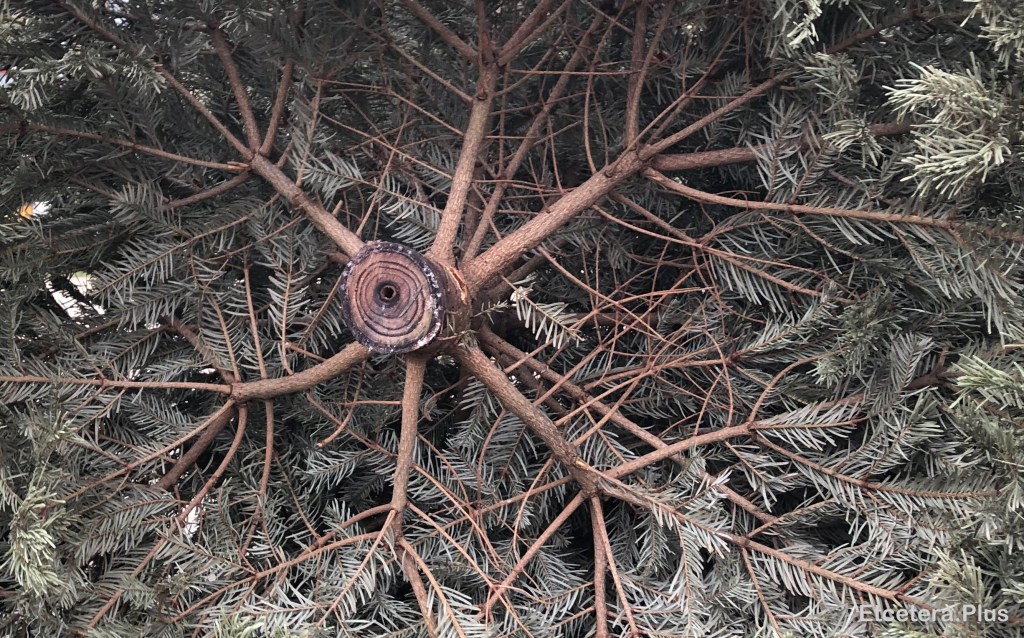 Kijk eens goed. Kijk eens naar de stam, naar de jaarringen, naar de naalden en takken. En zeg: dank je wel kerstboom, dat je na al die jaren je leven gaf voor ons vermaak.
