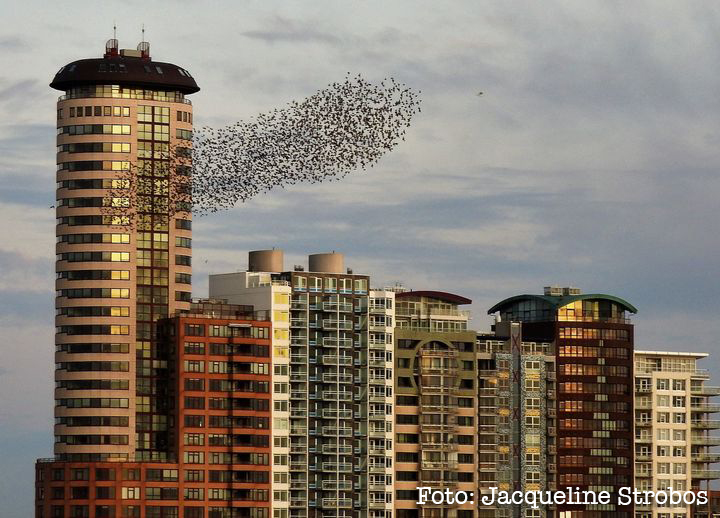 Foto van de spreeuwen die voor de Boulevard in Vlissingen vliegen is gemaakt door Jacqueline Strobos.