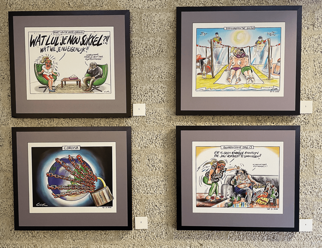De coronacrisis met mondkapjes, uche uche, vaccinatiedrang of -dwang, en hoe wij volk erop reageren. Maar dan door de ogen van cartoonist Cor de Jonge. Dat levert tekeningen op waar je om kunt lachen en waaraan je je kunt ergeren. Te zien in de bibliotheek ZB in Middelburg.