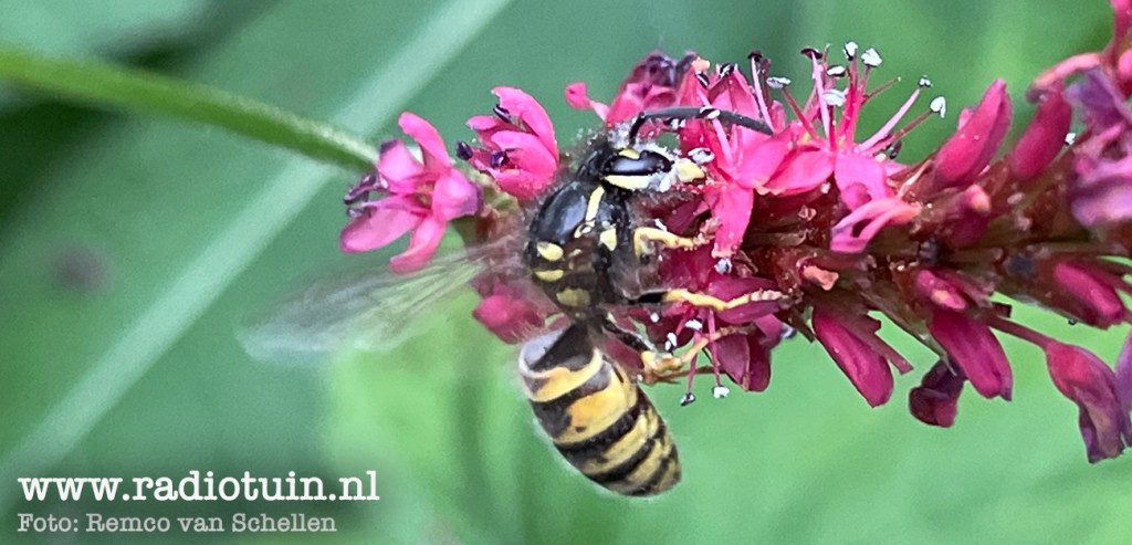 De wesp. Dat zwart-gele diertje met vleugels en een angel. Het is een vleesverzamelaar. Ze halen eiwitten uit de natuur door luizen, vliegen, muggen en andere insecten te vangen. Die brengen ze naar hun nest om de larven mee te voeden.