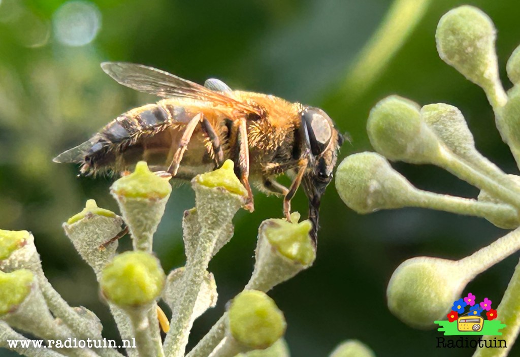 Het is feest voor de insecten, want de klimop bloeit. Die plant staat in menig tuin, en in september en oktober bloeit de plant. Bovenop komen allemaal bloemetjes. Die zijn erg nuttig, want ze dienen als een lekkere maaltijd.