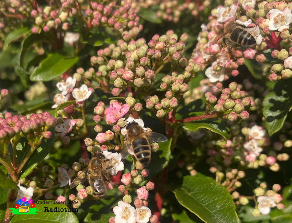 Het zoemt behoorlijk in de struik in Kwadendamme. Tientallen bijen in actie op een zonnige, maar tegelijk koude dag. Net als wij mensen worden de bijen extra actief door de zon. Ook als dat eigenlijk veel te vroeg in het seizoen is.