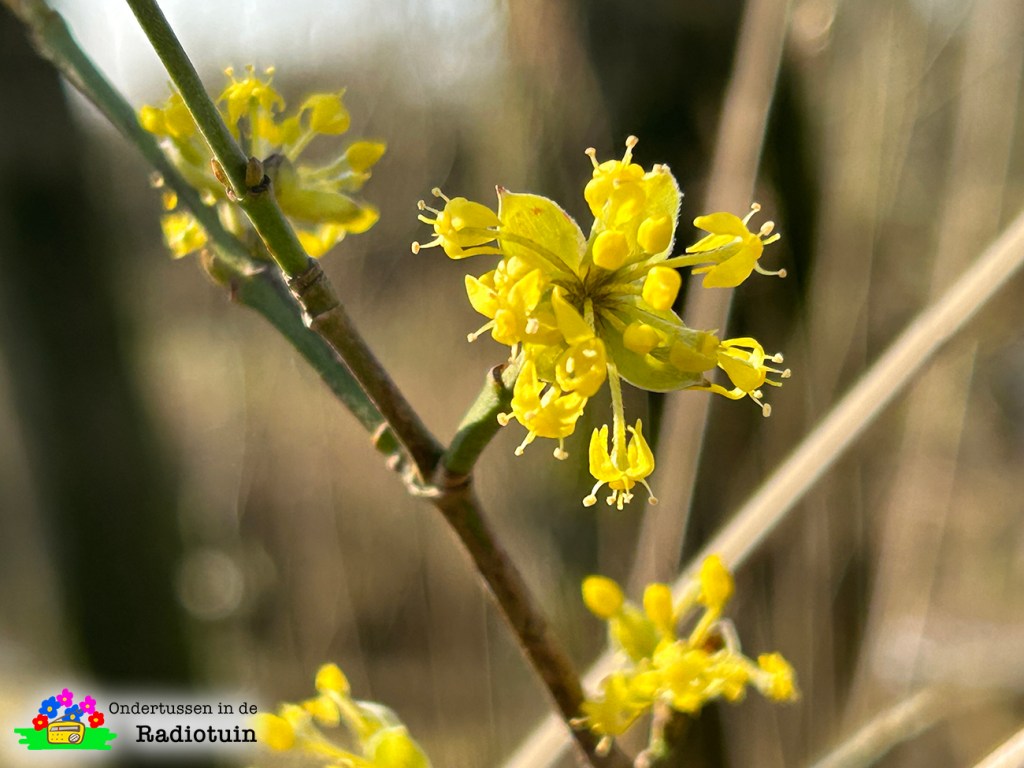 Nog geen groen blaadje aan de tak, en toch heeft die struik al bloemetjes. Voor kleur in de lente en voeding voor insecten. Het zijn de zogenaamde naaktbloeiers. Eric legt het uit aan Remco, in de Radiotuin.