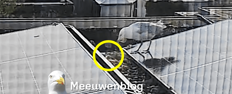 Het is letterlijk breaking news. Krak! Het eerste ei in het meeuwennest op het dak is geopend. Mini-meeuw in grote wereld. Op de video hieronder moet je goed kijken maar je ziet het uiteindelijk bewegen in het nest. Morgen meer over het jonge leven.
