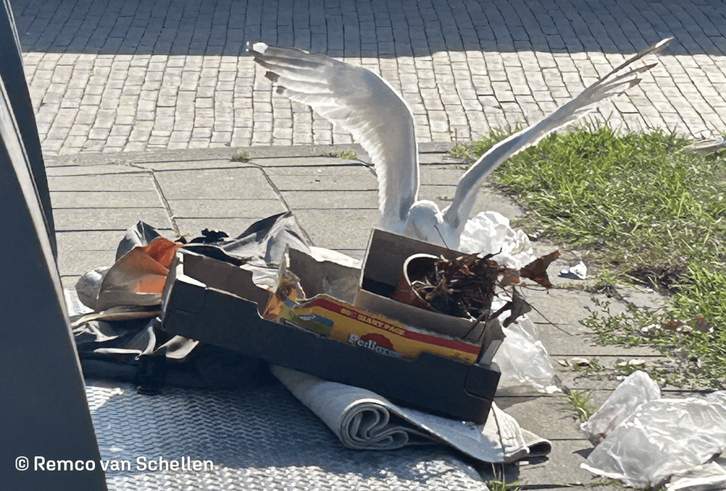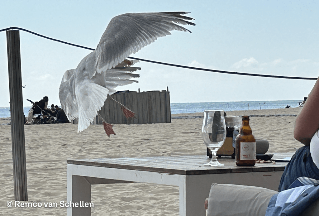 Over eten gesproken: je hoort mensen soms zeggen dat meeuwen zo brutaal zijn, en afvalzakken kapot pikken. Of nog erger: frietjes stelen. Maar: uiteindelijk doen meeuwen wat ze moeten doen: eten. Wij mensen zetten de afvalzak uit gemakzucht naast de container, in plaats van er in.