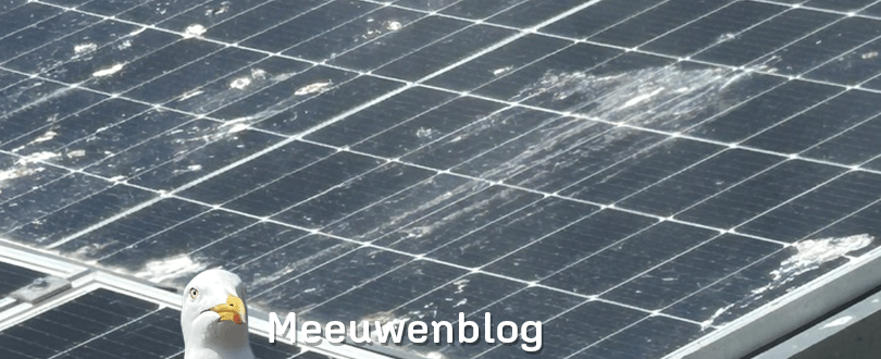 De meeuwen op ons dak hebben de zonnepanelen al vaak ondergescheten. Witte klodders die langzaam naar beneden druipen op de schuine panelen. Na een fikse regenbui is het meeste weg.