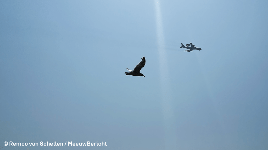 Het is een bijzondere vertoning in Vlissingen. Duizenden mensen kijken vanaf de Boulevard naar dat ene vliegtuig, een AWACS. De Boeing met draaiende antenne op het dak vliegt voor de NAVO de wereld rond, om militaire inlichtingen te vergaren.