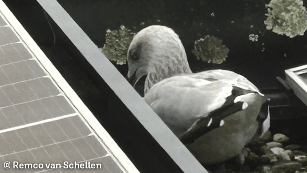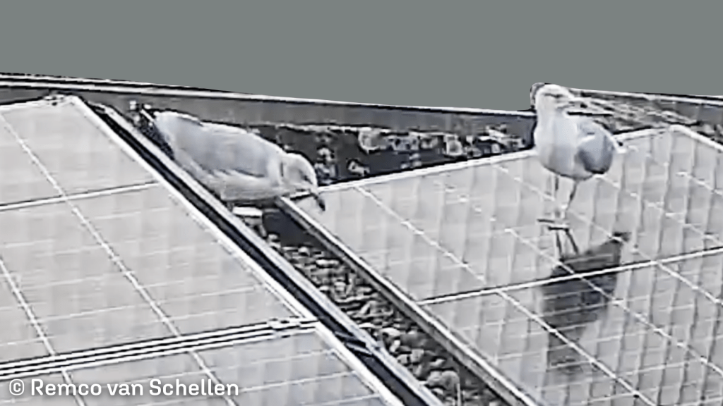 Het is dus niet helemaal zeker dat de twee meeuwen die rondom het verdwenen nest en de zonnepanelen dartelen dezelfde meeuwen zijn als in de zomer. Maar het lijkt er wel op. Waarom gaan ze anders precies op dezelfde plek kijken? Waarom gaan ze zitten op de plek waar het nest ooit was?