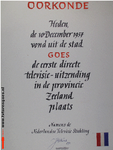 Wij zijn er trots op, dat de eerste definitieve televisiezender van Nederland in Goes werd gebouwd…. binnen is binnen.