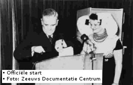 Het is de bedoeling dat de Commissaris van de Koningin na de toespraken om precies om twee uur op een knop drukt en zo het officiële sein aan de tv-studio in Bussum geeft om beelden naar Goes te zenden. En dat gebeurt dan ook, nadat nog meer mensen toespraken hebben gehouden.